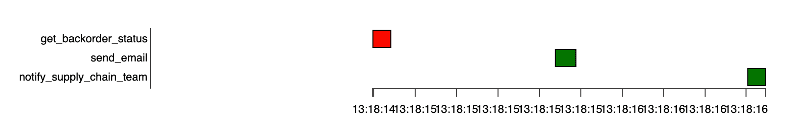 We glean this from reading the Python code top to bottom. If we could run this as a pure Python script, we would expect: get_backorder_status to run, then either send_email or create_order to run based on the branching logic, and after both of those are done and don’t raise exceptions, notify_supply_chain_team to run.