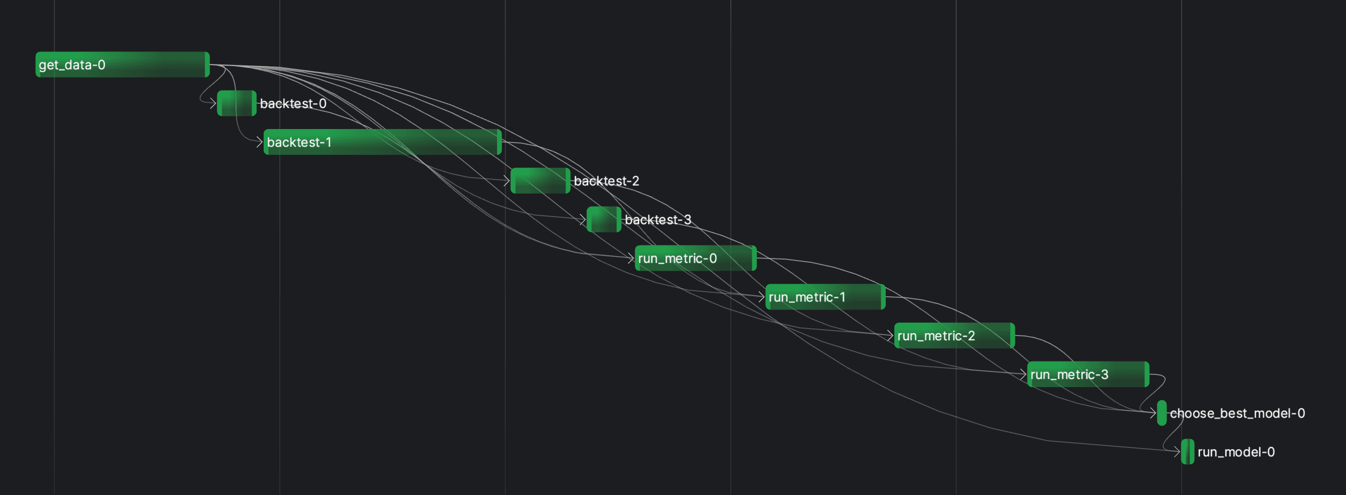 prediction_futures = backtest.map(MODELS.keys(), unmapped(data))This gives us a list of PrefectFutures– one for each of our models. Since we want a dictionary of prediction dataframes, we’ll use a dictionary comprehension and call each PrefectFuture’s result method: