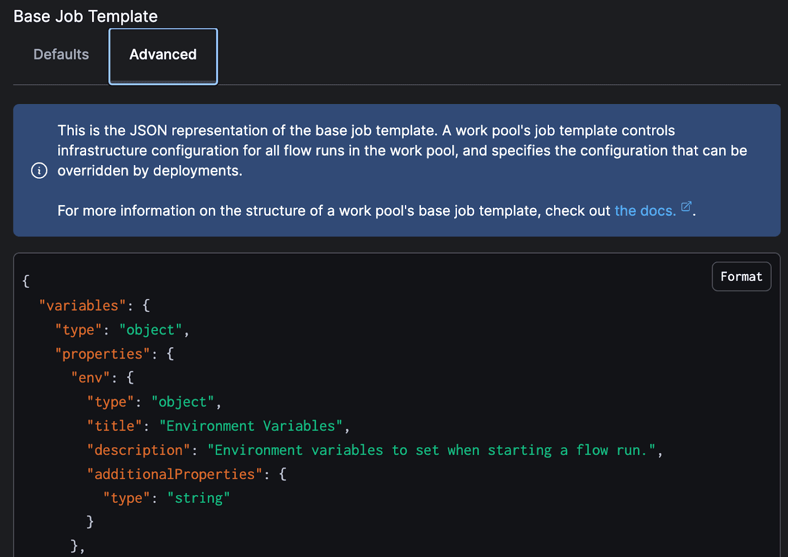 Work pools can be used to lock down deployment infrastructure options. For example, you can remove a field you don’t want deployment creators to adjust or hard code a value for it.