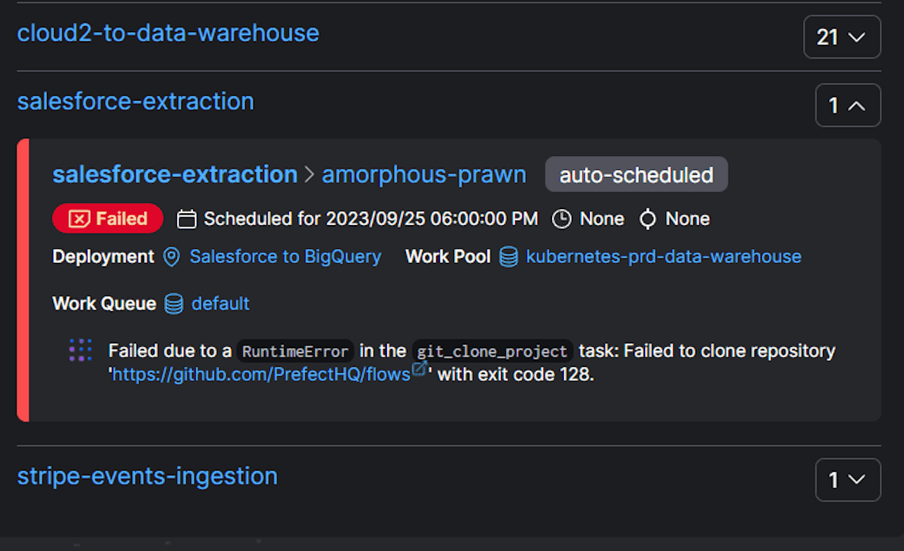 Additionally, if a Prefect team is using error summaries powered by MarvinAI, they can quickly see the source of workflow failures at a glance in the UI.