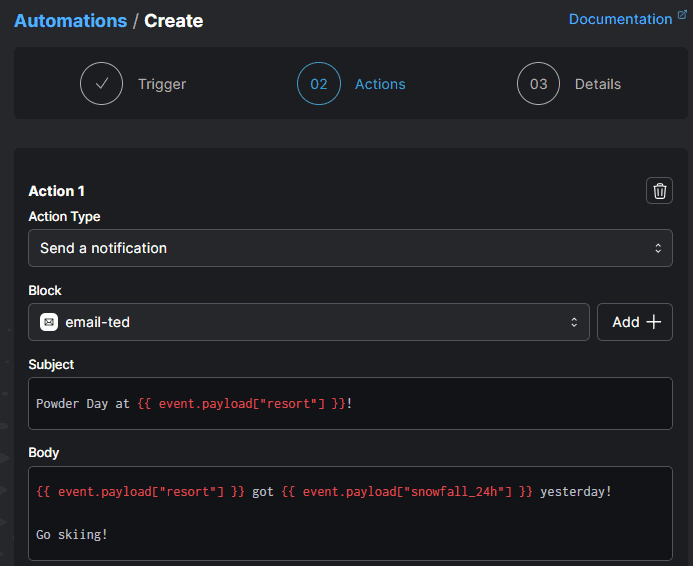 Automations can be used as notifications or to trigger other flows—in the case of the snow leaderboard, they provide the final step to being pinged about powder days.