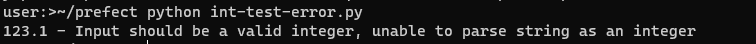 If you run this, Pydantic will throw an error, because you’ve attempted to pass a string decimal to an integer field: