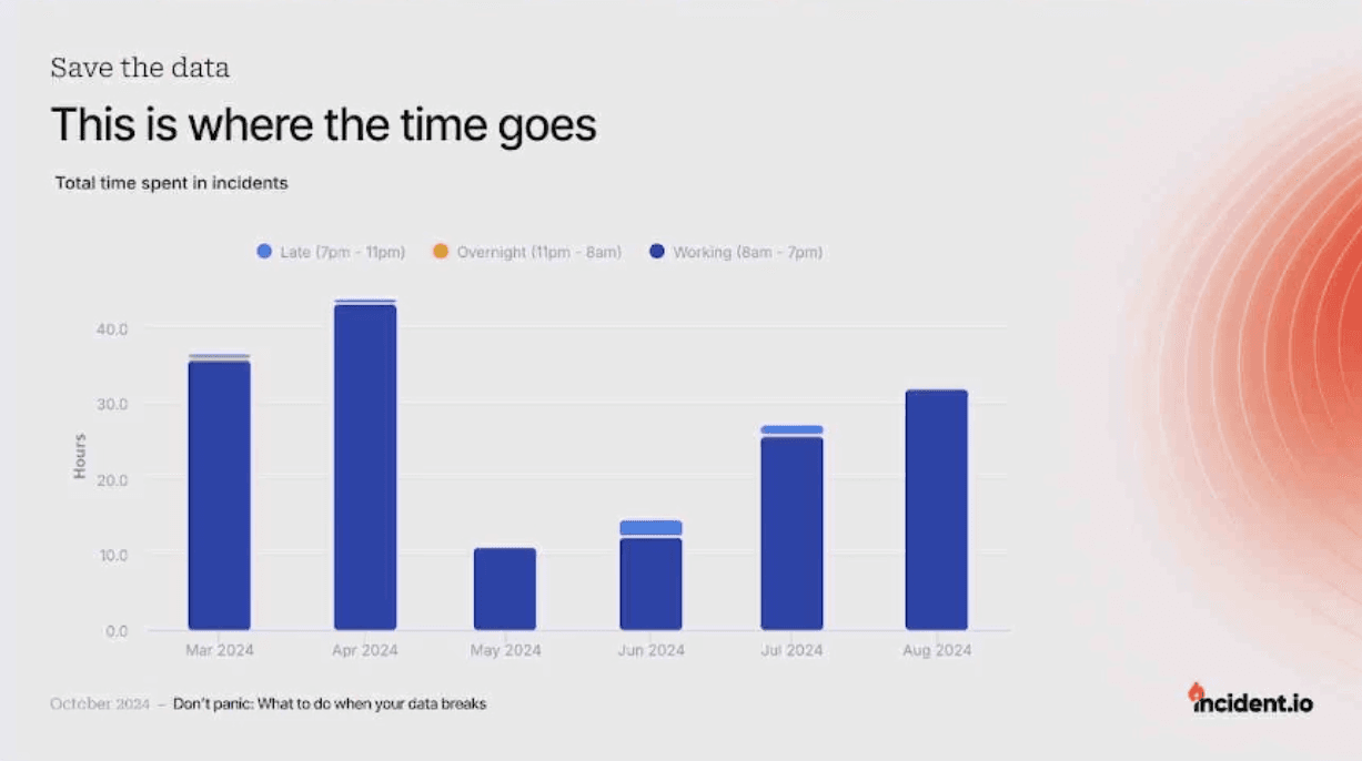 Matilda Hultgren from Incident.io presented a plan to help prevent that panic from setting in. In short, we should handle data problems the same way software engineers handle theirs.