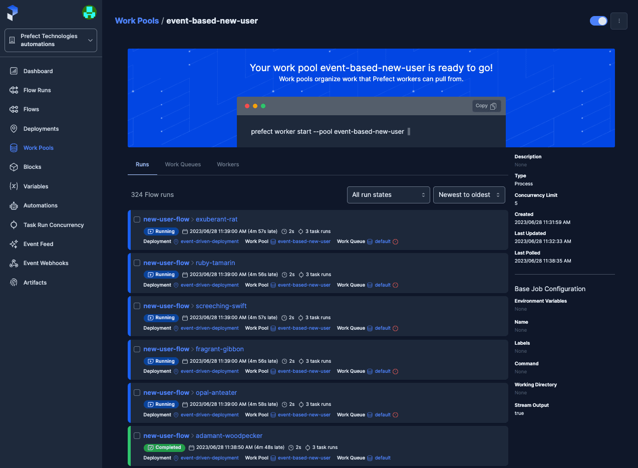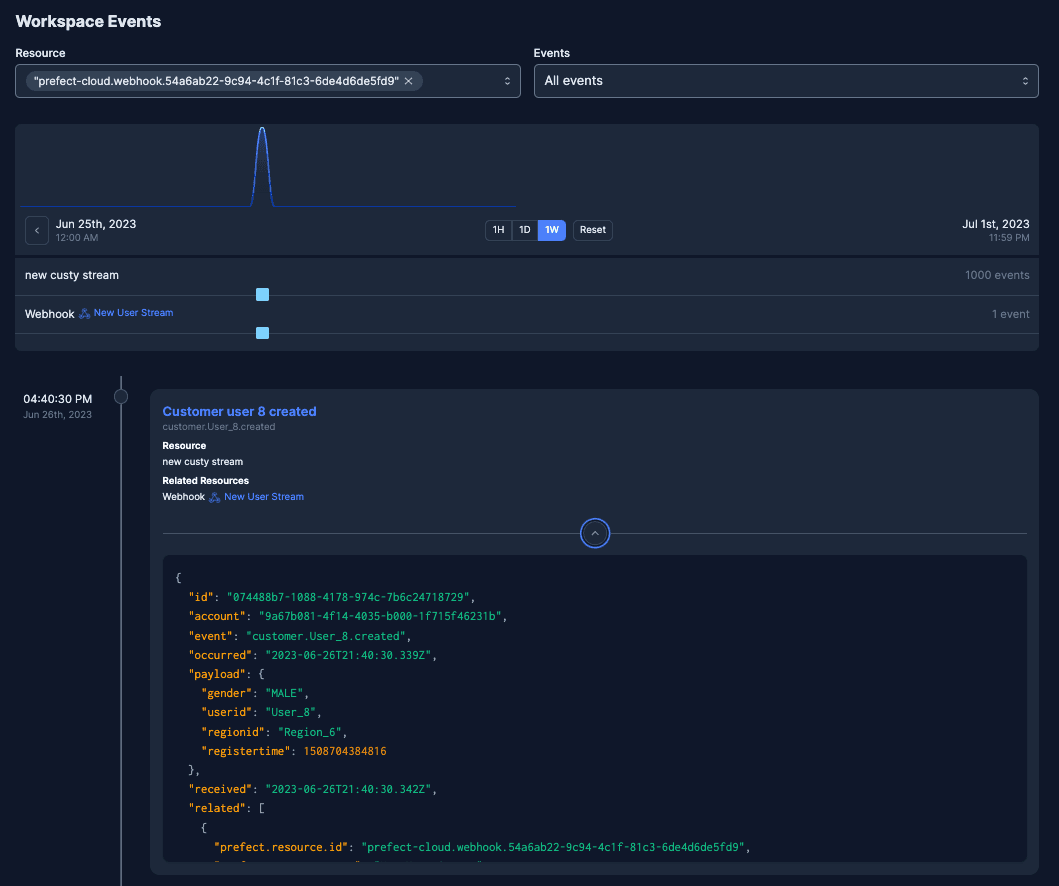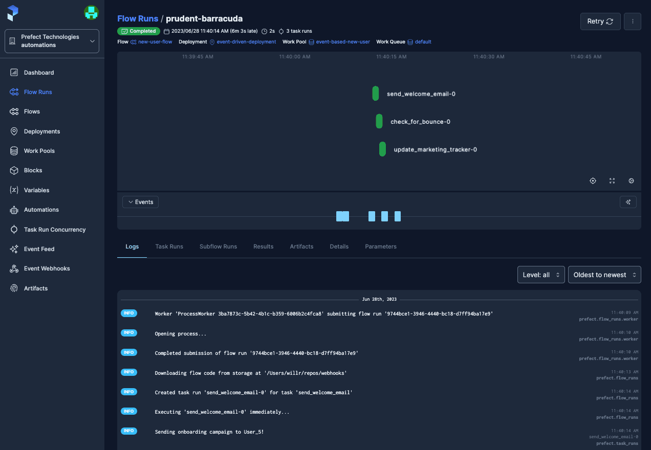And we immediately see user events start streaming into Prefect Cloud.