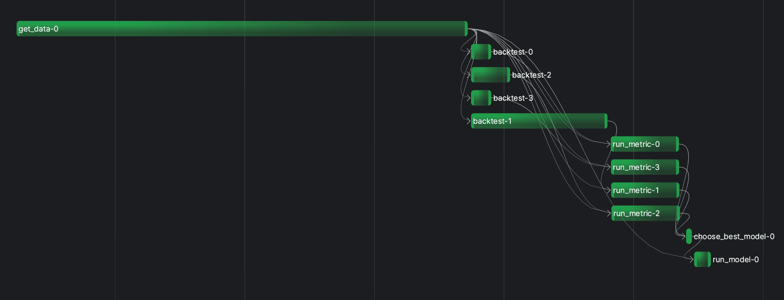 prediction_futures = backtest.map(MODELS.keys(), unmapped(data))This gives us a list of PrefectFutures– one for each of our models. Since we want a dictionary of prediction dataframes, we’ll use a dictionary comprehension and call each PrefectFuture’s result method: