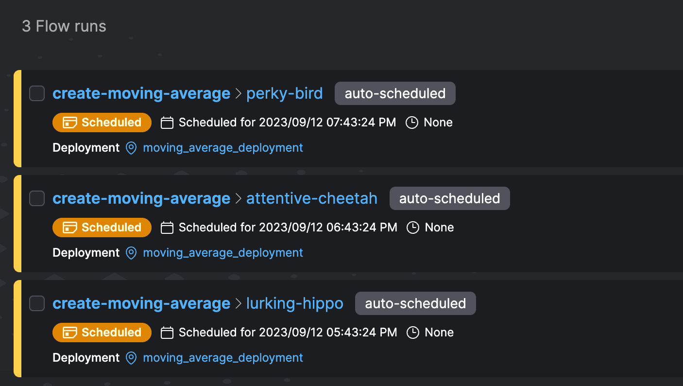 Congrats, you've got a flow scheduled with Prefect! A deployment was automatically created for you.