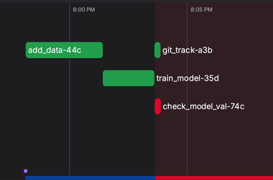 print(f"Rolling back workspace from {tag} to previous commit because validation accuracy was too low")Inside the function, we move the state of our workspace back to the most recent Git commit and call dvc checkout, which rolls back the DVC history.