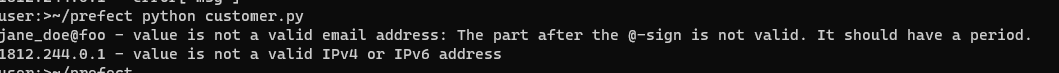 Need to format the results better for logging or user feedback? Easy enough - just wrap the creation of the Customer object in a Python try/except block: