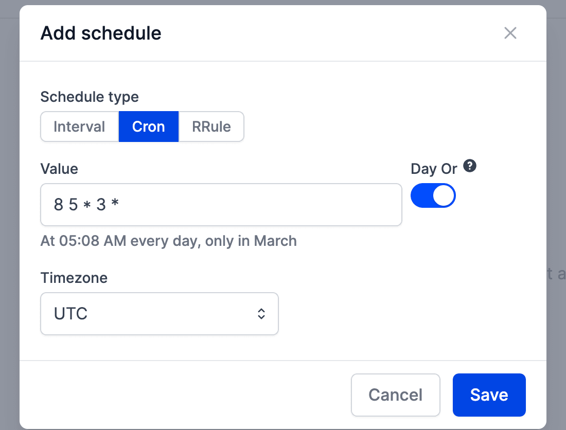 Luckily, it’s easy enough to build a cron schedule with dedicated websites, or Prefect’s GUI, to guide you.